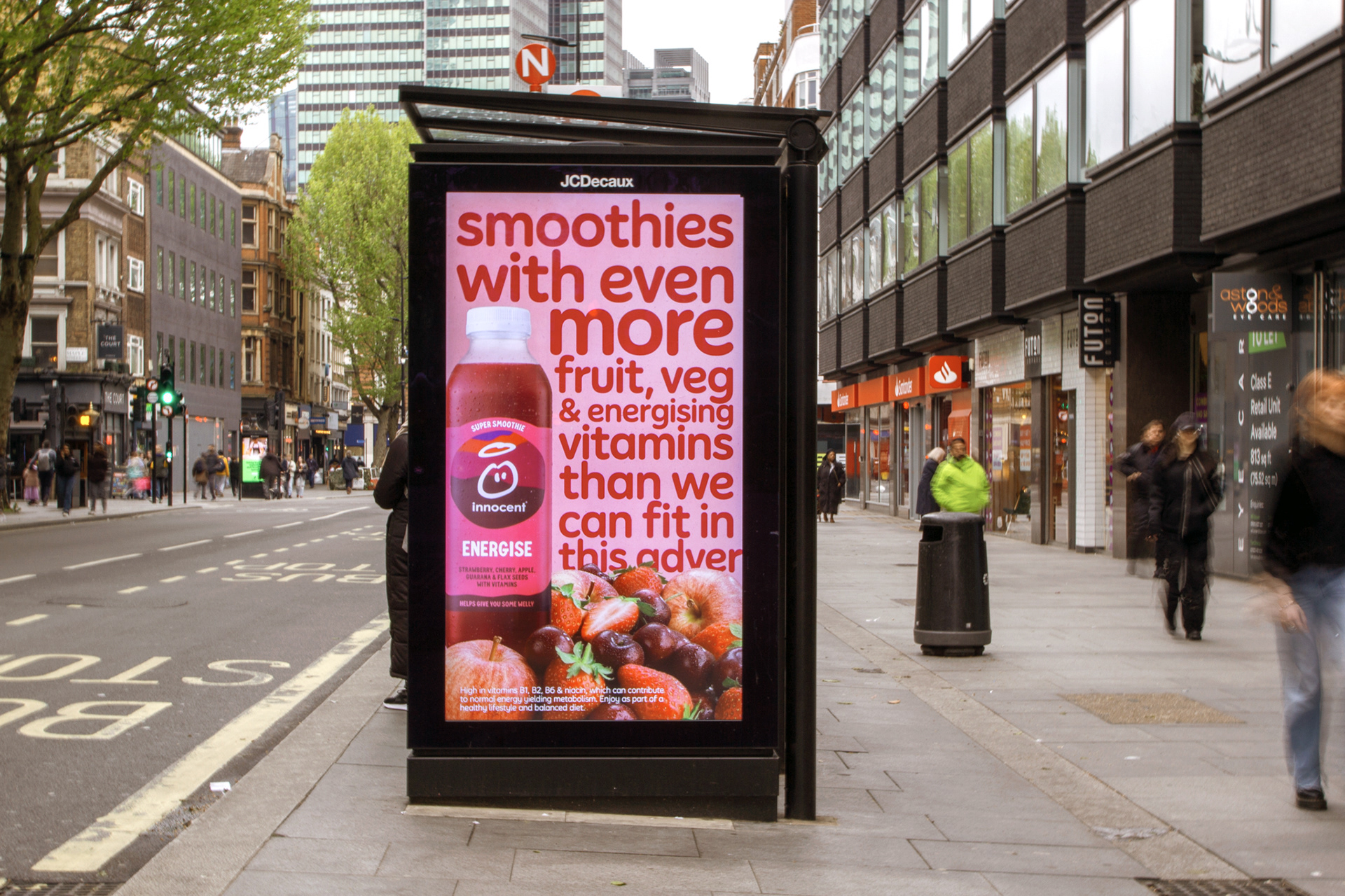 The “Even More Innocent” campaign jokingly highlighted how packed with goodness their drinks are by running out of space for all the details.